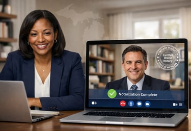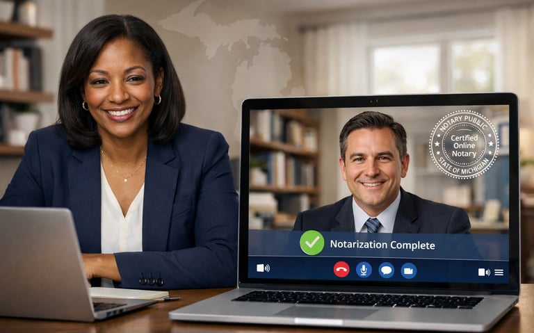 Get many Michigan documents notarized legally from your phone or computer in under 10 minutes. No travel, no waiting rooms, no bank hours — RON is statewide, 24 hours a day.